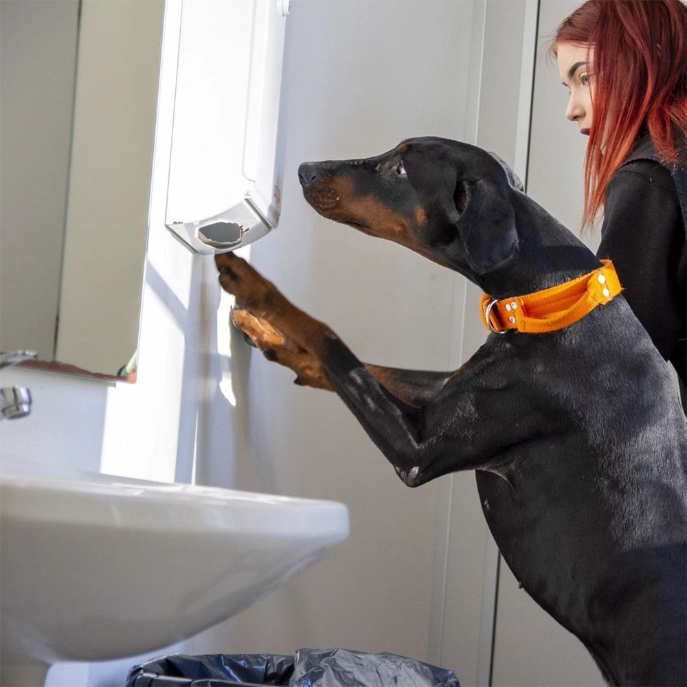 Teemme tutkimuksia myös suurempiin rakennuksiin esim. koulut, taloyhtiöt, toimistot, hallitilat yms. Koulutetut koirat etsivät niille opetettujen yleisimpien kosteusvauriomikrobien hajuja. Koiran tarkka kuono haistaa ison määrän erilaisia haitallisia mikrobeja, joista esimerkiksi kodinostajan on hyvä olla tietoinen.